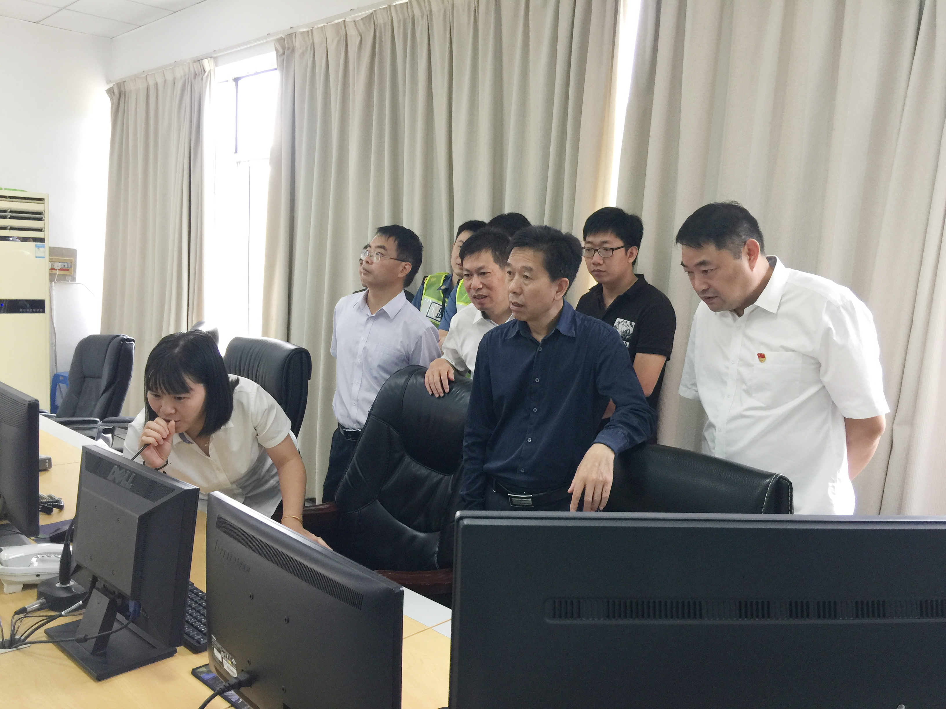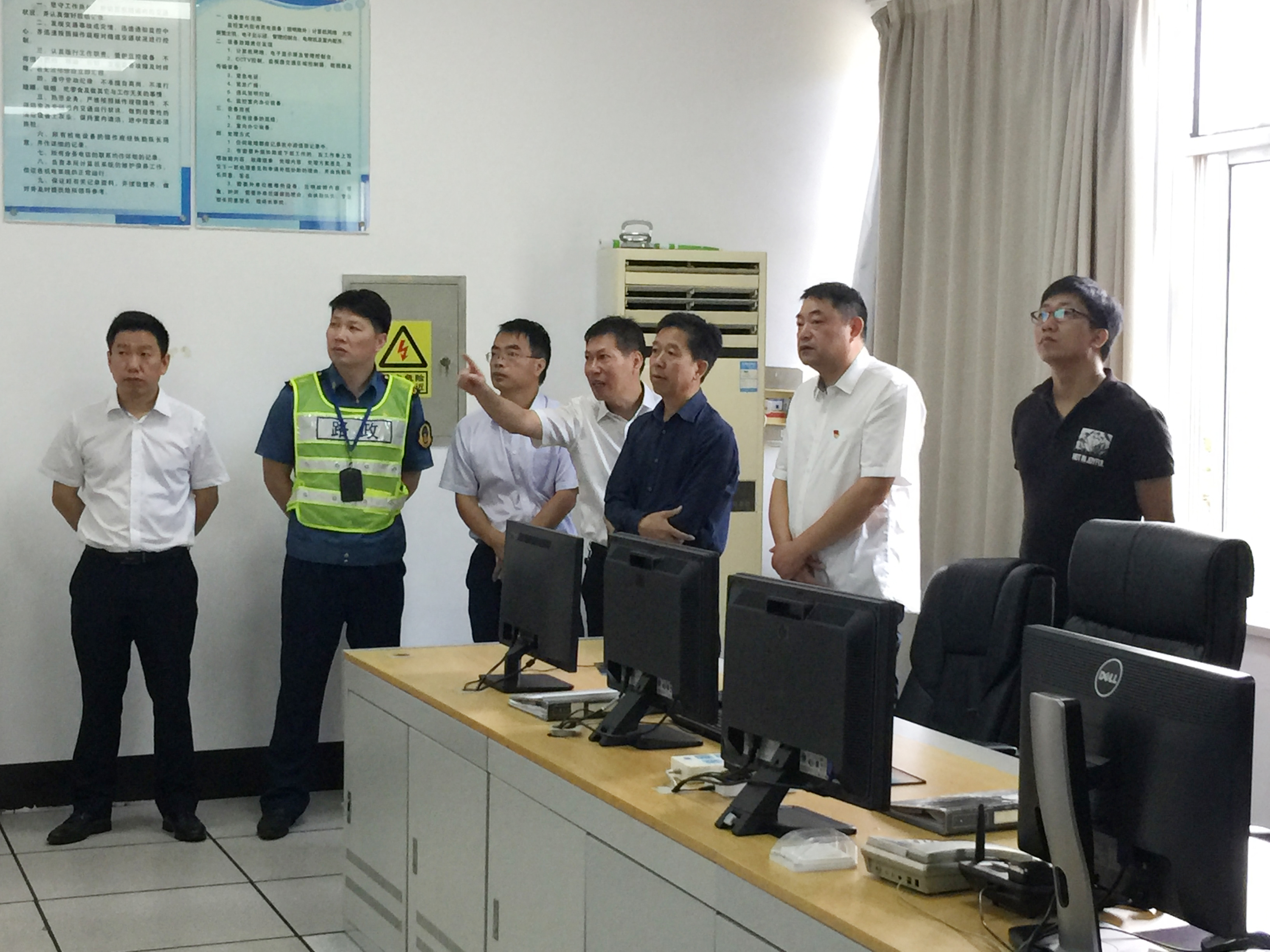 圖為市公路局副局長童桂正一行在黃土嶺隧道所檢查 檢查組一行先后來到黃土嶺、大溪嶺隧道所,在檢查隧道所中控室時,他們詳細了解隧道所監控系統、火災報警系統運行情況及突發事件應急預案制定、應急搶險人員設備物資配備情況等,并現場讓中控員大屏視頻切換、緊急廣播呼叫等演示,對集團安全管理工作給予充分肯定。江輝表示,集團橋梁隧道運營管理制度和應急體系制度健全,并嚴格按照相關規定開展日常檢查和定期檢測工作。